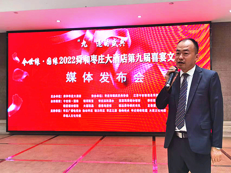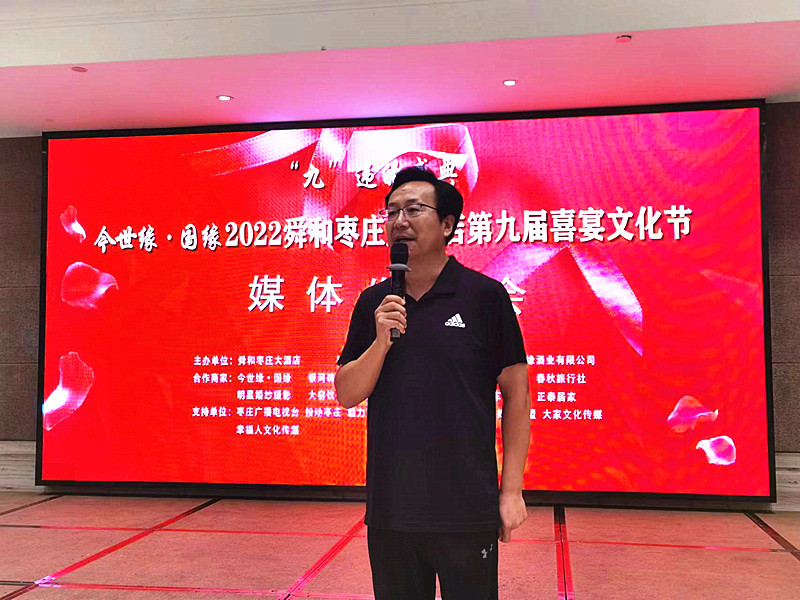 9月12日下午,由舜和棗莊大酒店主辦,棗莊市婚慶慶典協(xié)會、江蘇今世緣酒業(yè)有限公司協(xié)辦的”“九”違的盛典——今世緣·國緣 2022舜和棗莊大酒店第九屆喜宴文化節(jié)媒體發(fā)布會在舜和棗莊大酒店隆重舉行。