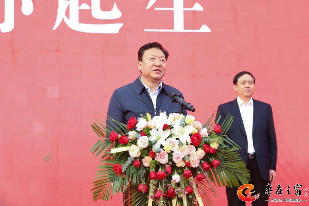孫起生宣布棗莊惠民鐵路專用線正式通車。